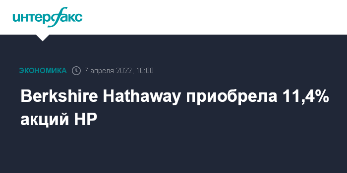 Москва. 7 апреля. INTERFAX.RU - Инвестиционная компания миллиардера Уоррена Баффета Berkshire Hathaway Inc. приобрела 11,4% акций производителя ПК и принтеров HP Inc., стоимость которых превышает $4,2 млрд.
