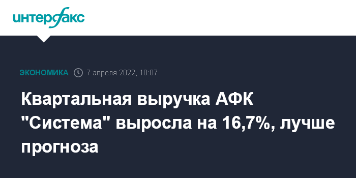 Показатели "Системы" оказались лучше консенсус-прогноза "Интерфакса". Накануне опрошенные агентством аналитики ожидали роста выручки АФК на 15,5% - до 223,27 млрд рублей.