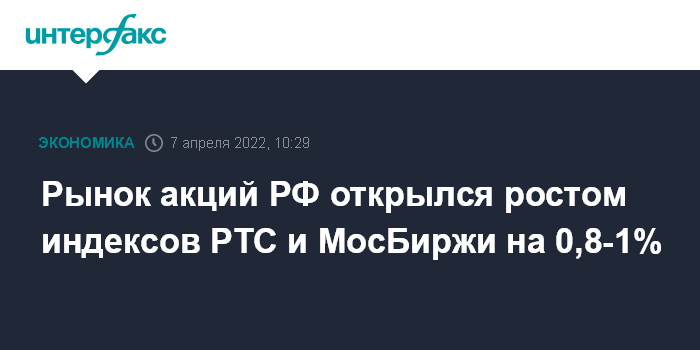 Рынок акций РФ открылся ростом индексов РТС и МосБиржи на 0,8-1%