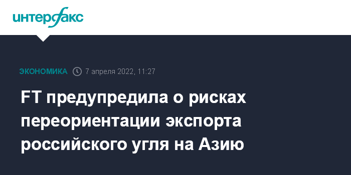 Москва. 7 апреля. INTERFAX.RU - Российские производители угля могут столкнуться со сложностями и даже потерями при переориентировании экспорта топлива с европейских рынков на азиатские, если EC введет полный запрет на ввоз этого энергоносителя из России, пишет Financial Times.