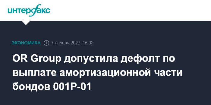 OR Group допустила дефолт по выплате амортизационной части бондов 001Р-01