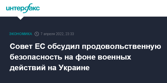 Совет ЕС обсудил продовольственную безопасность на фоне военных действий на Украине