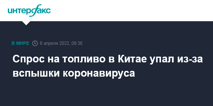 Локдауны в Шанхае и близлежащих городах, а также другие ограничения на перемещение внутри страны, по данным консалтинговой компании FGE, снизили спрос на транспортное топливо на 1,2-1,3 млн баррелей в сутки. Около половины этого объема приходится на авиатопливо, отмечают аналитики.