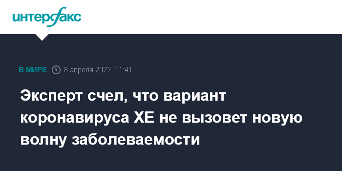 Москва. 8 апреля. INTERFAX.RU - Появление более заразного варианта омикрон-штамма коронавируса XE, скорее всего, не приведет к новой волне заболеваемости COVID-19, так как в России сформировалась иммунная прослойка к коронавирусу, сообщил журналистам руководитель научной группы разработки новых методов диагностики на основе технологий секвенирования ЦНИИ Эпидемиологии Роспотребнадзора Камиль Хафизов.