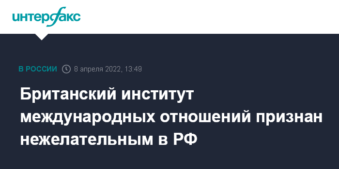 Москва. 8 апреля. INTERFAX.RU - Генпрокуратура РФ признала нежелательной в России деятельность британского Королевского института международных отношений.