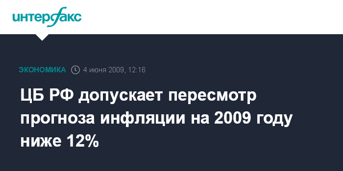 ЦБ РФ допускает пересмотр прогноза инфляции на 2009 году ниже 12%