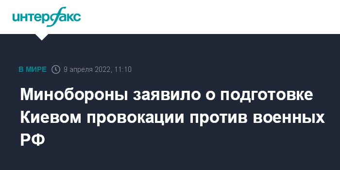 Москва. 9 апреля. INTERFAX.RU - Министерство обороны России заявило, что власти Украины готовят провокацию, чтобы обвинить российских военных в массовых убийствах гражданского населения Ирпеня под Киевом.