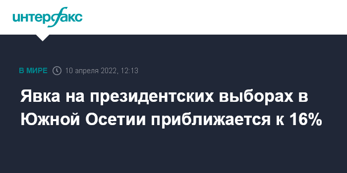 Москва. 10 апреля. INTERFAX.RU - Представитель Центральной избирательной комиссии Южной Осетии Игорь Чочиев озвучил данные о явке избирателей на выборах президента республики.