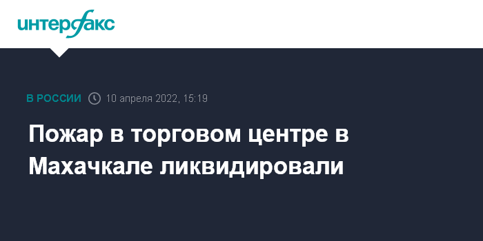 Москва. 10 апреля. INTERFAX.RU - Сотрудники МЧС в Дагестане потушили пожар, произошедший в торговом центре в Махачкале, сообщает в воскресенье пресс-служба ГУ МЧС России по республике.