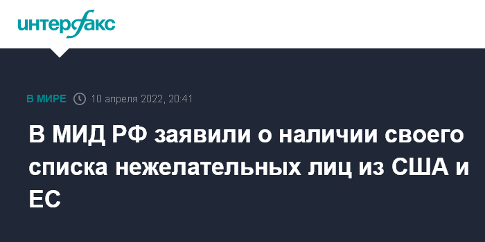 Москва. 10 апреля. INTERFAX.RU - У Москвы есть свой список нежелательных персоналий из США и ЕС, который в случае необходимости может быть расширен, заявил в воскресенье замглавы МИД РФ Сергей Вершинин.