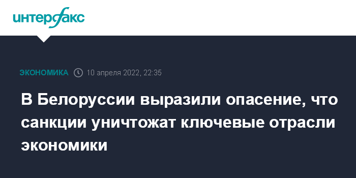 Москва. 10 апреля. INTERFAX.RU - Министр экономики Белоруссии Александр Червяков в эфире телеканала "Беларусь-1" в воскресенье назвал западные санкции экономическим геноцидом и высказал опасение, что они уничтожат целый ряд ключевых для экономики страны отраслей.