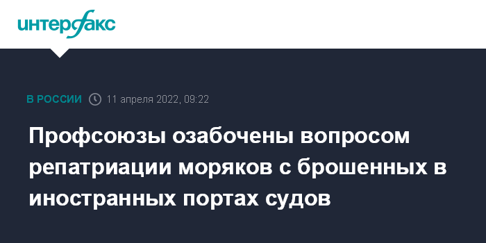 Профсоюзы озабочены вопросом репатриации моряков с брошенных в иностранных портах судов