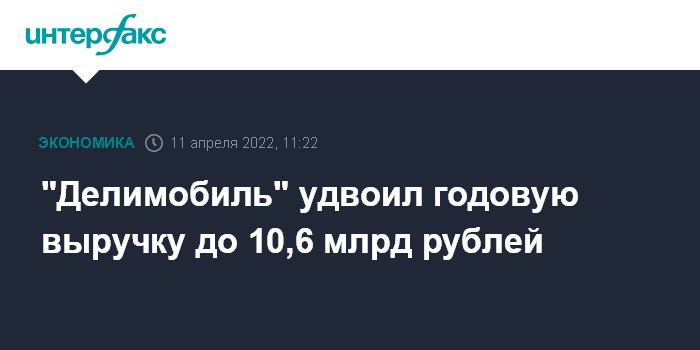 Москва. 11 апреля. INTERFAX.RU - В 2021 году выручка ООО "Каршеринг Руссия" - основного юрлица каршеринга "Делимобиль" - составила 10,6 млрд рублей, что в два раза больше, чем в 2020 году, говорится в бухгалтерской отчетности компании.