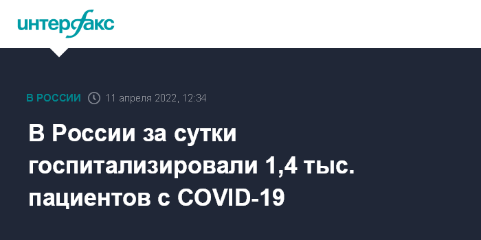 Москва. 11 апреля. INTERFAX.RU - В России за сутки госпитализировали 1 390 пациентов с коронавирусом, следует из данных оперативного штаба, обнародованных в понедельник.