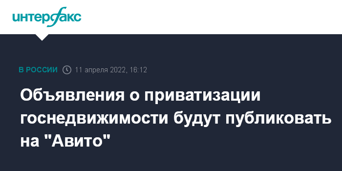Объявления о приватизации госнедвижимости будут публиковать на "Авито"