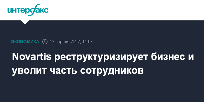 Москва. 12 апреля. INTERFAX.RU - Швейцарская фармацевтическая компания Novartis AG подтвердила планы по сокращению штата в рамках реорганизации бизнеса, нацеленной на экономию порядка $1 млрд к 2024 году.