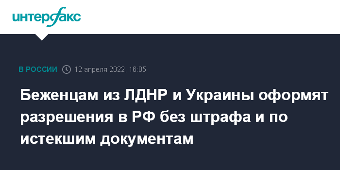 Беженцам из ЛДНР и Украины оформят разрешения в РФ без штрафа и по истекшим документам