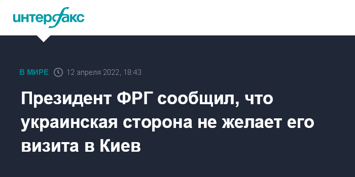 Москва. 12 апреля. INTERFAX.RU - Президент Германии Франк-Вальтер Штайнмайер сообщил, что в Киеве считают его возможный визит на Украину нежелательным.