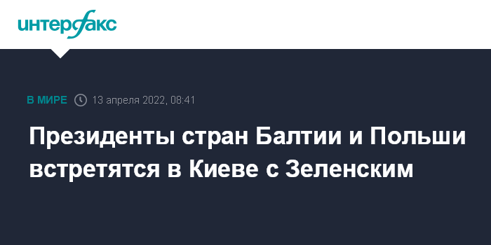 Москва. 13 апреля. INTERFAX.RU - Президенты Польши, Латвии, Литвы и Эстонии Анджей Дуда, Эгил Левитс, Гитанас Науседа и Алар Карис в среду посетят Киев и встретятся там с президентом Украины Владимиром Зеленским, сообщили "Интерфаксу" в пресс-службе главы эстонского государства.