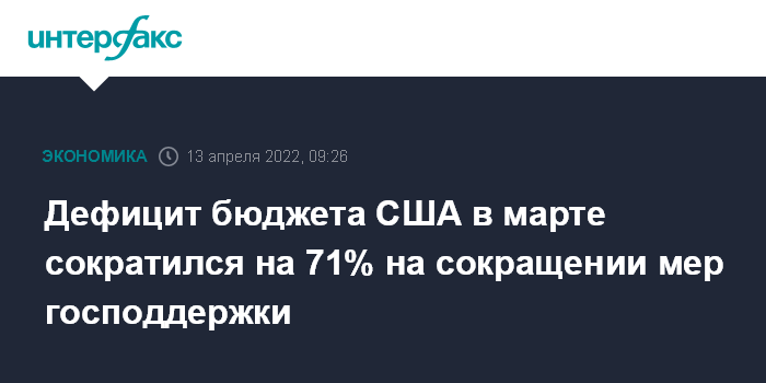Дефицит бюджета США в марте сократился на 71% на сокращении мер господдержки