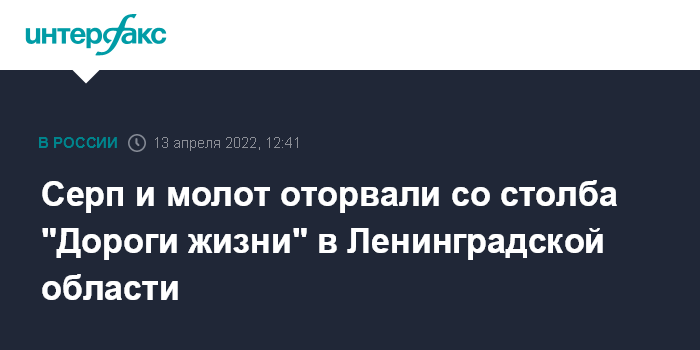 Серп и молот оторвали со столба "Дороги жизни" в Ленинградской области