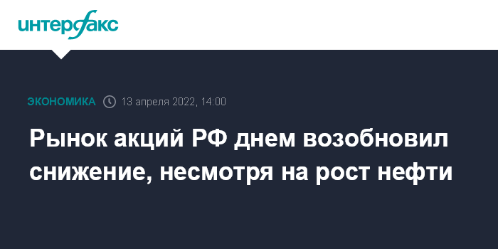 Рынок акций РФ днем возобновил снижение, несмотря на рост нефти