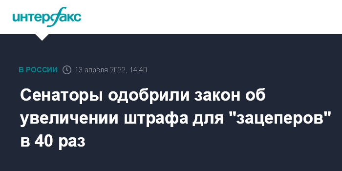Сенаторы одобрили закон об увеличении штрафа для "зацеперов" в 40 раз