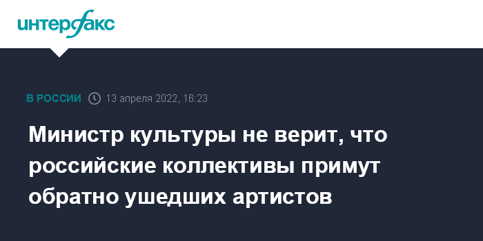 Министр культуры не верит, что российские коллективы примут обратно ушедших артистов