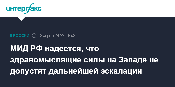 МИД РФ надеется, что здравомыслящие силы на Западе не допустят дальнейшей эскалации