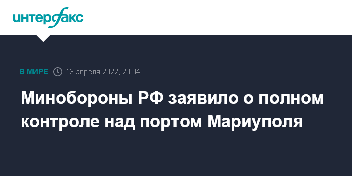 Москва. 13 апреля. INTERFAX.RU - Российские военные сообщили, что взяли под контроль морской торговый порт в Мариуполе.