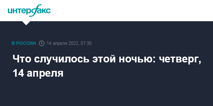 Москва. 14 апреля. INTERFAX.RU - Краткая сводка событий, произошедших к утру: