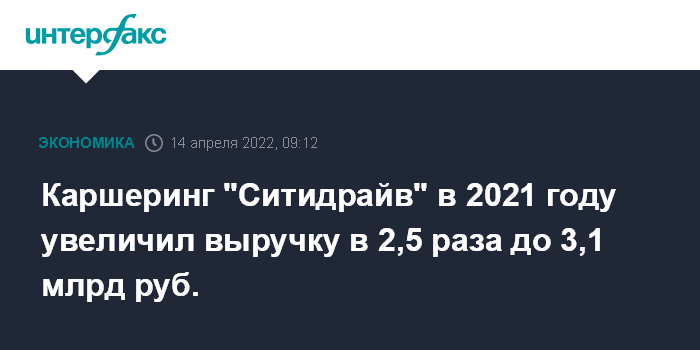 Москва. 14 апреля. INTERFAX.RU - Выручка ООО "НТС" (сервис каршеринга "Ситидрайв") по итогам 2021 года выросла в 2,5 раза и составила 3,1 млрд рублей, следует из бухгалтерской отчетности компании.