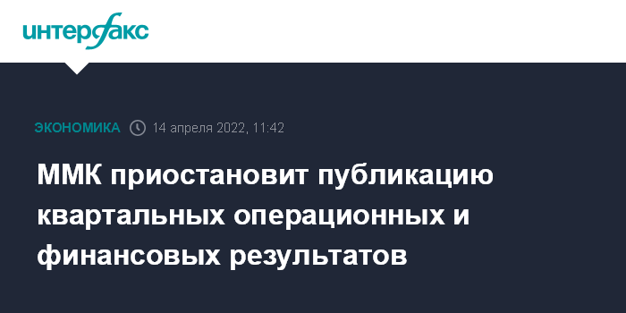 Москва. 14 апреля. INTERFAX.RU - ПАО "Магнитогорский металлургический комбинат" приняло решение временно не публиковать финансовые и операционные результаты за I квартал.