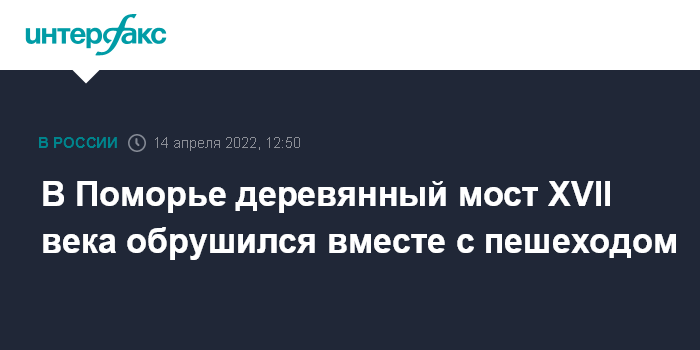 В Поморье деревянный мост XVII века обрушился вместе с пешеходом