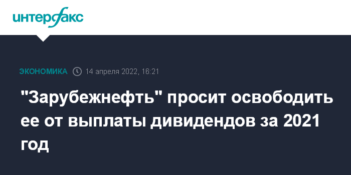 "Зарубежнефть" просит освободить ее от выплаты дивидендов за 2021 год
