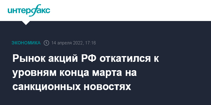 Рынок акций РФ откатился к уровням конца марта на санкционных новостях