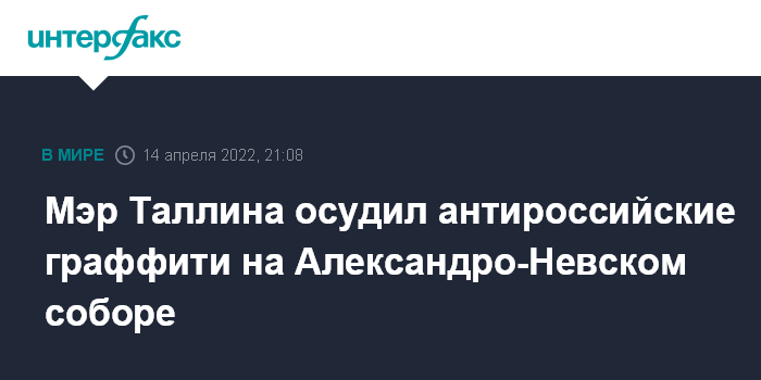 Москва. 14 апреля. INTERFAX.RU - Мэр Таллина Михаил Кылварт осудил осквернение Александро-Невского кафедрального собора Эстонской православной церкви Московского патриархата.