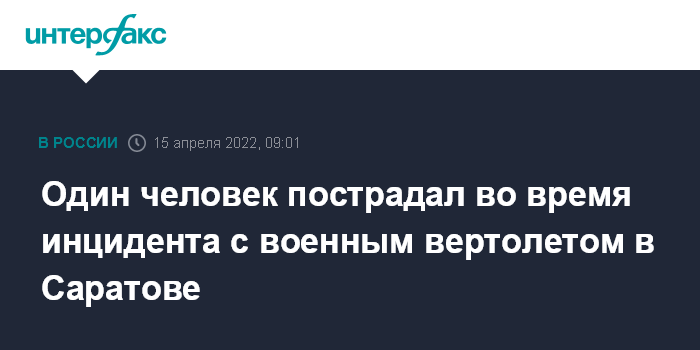 Один человек пострадал во время инцидента с военным вертолетом в Саратове