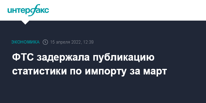 Москва. 15 апреля. INTERFAX.RU - Федеральная таможенная служба (ФТС) задержала публикацию статистики по импорту в РФ товаров из стран дальнего зарубежья за март 2022 года.
