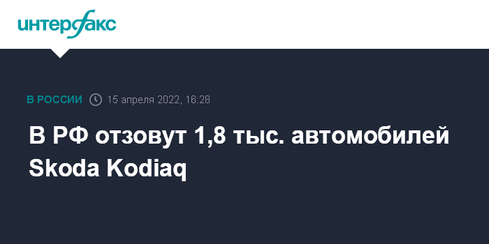 Москва. 15 апреля. INTERFAX.RU - Российское подразделение немецкого автоконцерна Volkswagen - ООО "Фольксваген Груп Рус" - отзывает в России 1 824 автомобиля Skoda Kodiaq.