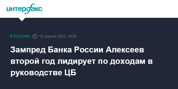 По итогам 2020 года Алексеев обогнал по доходам первого зампреда Банка России Ольгу Скоробогатову, лидировавшую несколько лет. В ЦБ Алексеев перешел с поста главы Юникредит банка в октябре 2020 года.