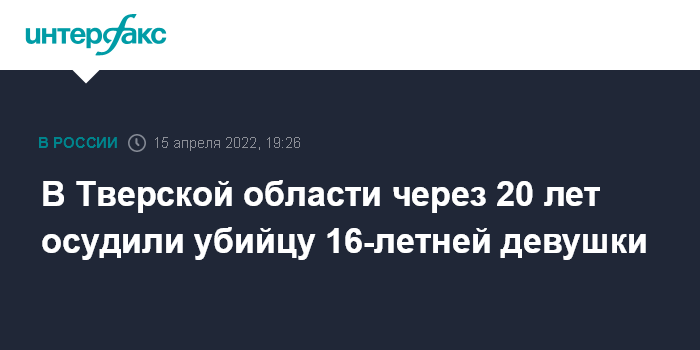 В Тверской области через 20 лет осудили убийцу 16-летней девушки