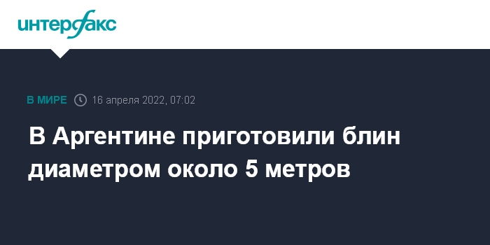 Москва. 16 апреля. INTERFAX.RU - Организаторы фестиваля в Аргентине заявили, что побили мировой рекорд Гиннесса, приготовив жареный пирог диаметром около 5 метров, передает агентство United Press International.