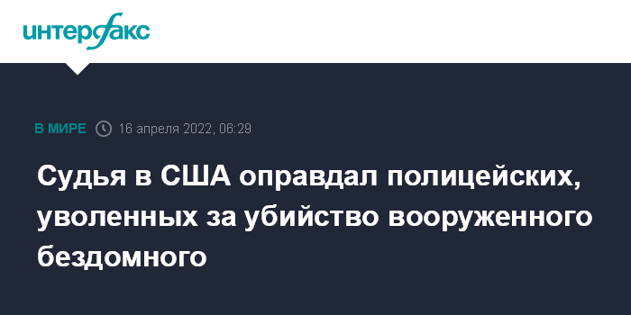 Судья в США оправдал полицейских, уволенных за убийство вооруженного бездомного