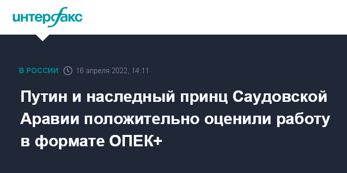 Путин и наследный принц Саудовской Аравии положительно оценили работу в формате ОПЕК+