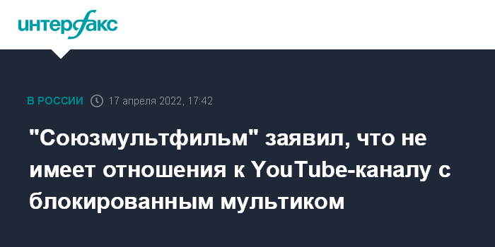 Москва. 17 апреля. INTERFAX.RU - Киностудия "Союзмультфильм" не имеет отношения к YouTube-каналу, на котором стал недоступен мультфильм "Сокровища затонувших кораблей".