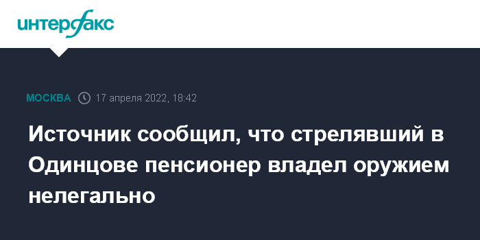 Источник сообщил, что стрелявший в Одинцове пенсионер владел оружием нелегально