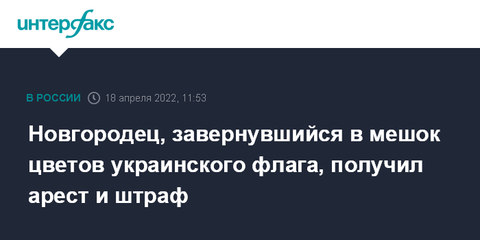 Новгородец, завернувшийся в мешок цветов украинского флага, получил арест и штраф