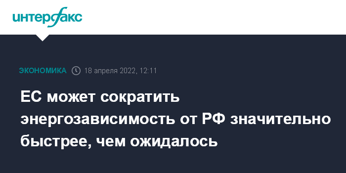 ЕС может сократить энергозависимость от РФ значительно быстрее, чем ожидалось