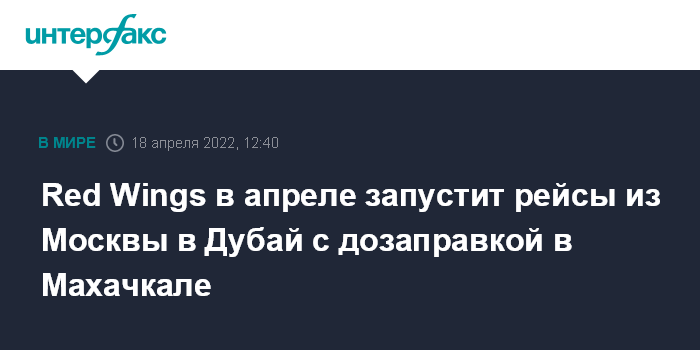 Москва. 18 апреля. INTERFAX.RU - Red Wings 27 апреля планирует запустить рейсы из Москвы (аэропорт "Домодедово") в Дубай (ОАЭ), сообщает авиакомпания.
